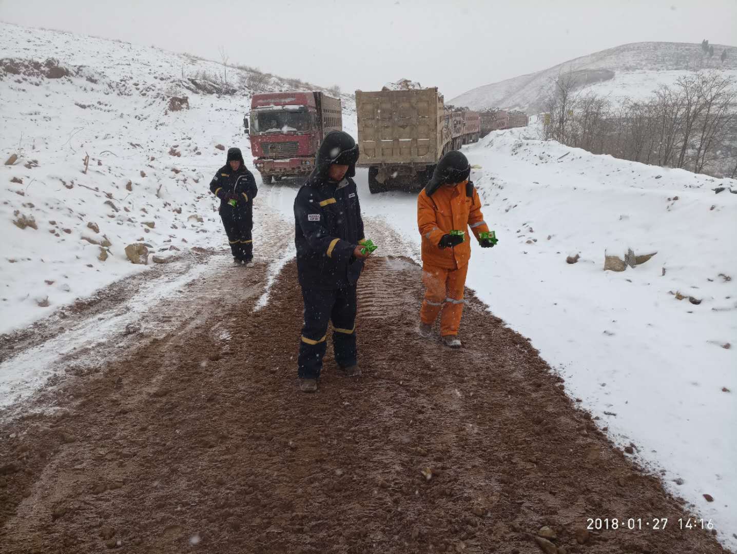 -----兗州中材禹州分公司趕工生產(chǎn)場記 雪花,仿佛在此迷了路,不知疲倦地,連續(xù)三天三夜,一片又一片,鋪天蓋地般伴隨著透骨的寒風(fēng),利刃似的迎面而來…… 數(shù)九寒天,持續(xù)低溫,千里冰封,萬里雪飄,整個世界好像變成了一只巨大無比的冰箱,山川冷地顫抖,路面凍地僵硬,就連空氣,似乎也要凝固起來。 安全生產(chǎn)大于天!已是寒冬臘月,年關(guān)將至,為了能在1月21日到2月10日為期20的天生產(chǎn)期限內(nèi)正常供礦,滿足水泥廠順利生產(chǎn)的需求,禹州分公司的全體員工們正夜以繼日、廢寢忘食的堅守在生產(chǎn)最前線。 面對糟糕天氣帶來的種種不利生產(chǎn)因素,他們沒有退縮,也沒有氣餒,更沒有逃避:冰天雪地,道路本來就滑得連走路都異常謹(jǐn)慎、艱難,而被運輸車輛來來回回碾壓過的運礦道路更是如履薄冰!安全隱患不容小覷,及時、合理、有效的解決措施更是刻不容緩!現(xiàn)場管理人員迅速調(diào)動裝載機用土石鋪墊路面。 然而,剛剛鋪好的“安心”路面很快又被不停飄落的雪花覆蓋了、掩埋了,大家又立即采取了人工往運礦道路上撒鹽的辦法來融雪化冰,以達到安全生產(chǎn)、穩(wěn)產(chǎn)的目的。 緊繃安全生產(chǎn)的琴弦,現(xiàn)場管理人員們時刻眼觀六路,耳聽八方,腳不停歇。白茫茫的礦山上時不時走動著這些忙碌的可愛“雪人們”,他們在認(rèn)真負(fù)責(zé)地指揮挖機師傅如何合理挖裝;他們在耐心十足的警醒汽車司機放慢車速、平穩(wěn)倒料、安全第一;他們再仔細(xì)檢查、巡視每一個可能出現(xiàn)安全紕漏的角落。 大地一片銀白,一片潔凈,夜已很深,而雪花,仍如柳絮,如鵝毛,如棉花,從無邊無際的天空中不知倦怠的飄飄灑灑,寒風(fēng)怒吼著呼嘯而過,低溫仍在繼續(xù)發(fā)酵!天寒地凍里,不畏嚴(yán)寒風(fēng)霜,不懼艱難險阻、勇于吃苦耐勞的禹州分公司的全體員工依舊未眠,他們正用滿腔的青春熱血和積極飽滿工作熱情來燃燒、來暖化這萬里冰山...... 兗州中材建設(shè)有限公司禹州分公司 2018年1月27日 |