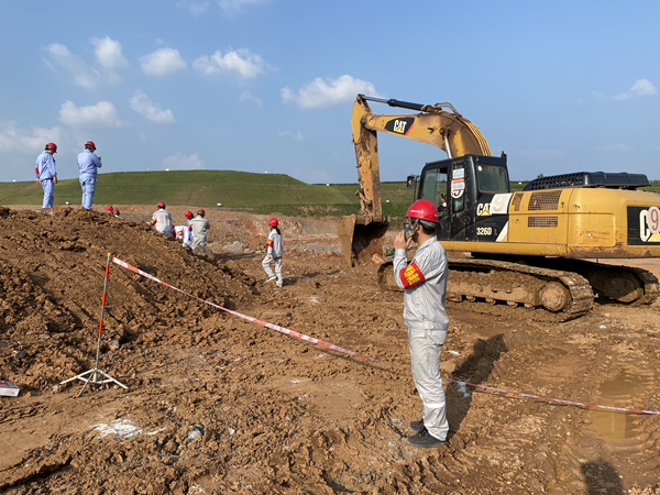 演練模擬礦山施工作業面35平臺進行爆破作業,由于炮孔充填深度不夠,導致沖孔現象,產生飛石,現場管理人員在礦區北側警戒時,被爆破飛石砸中,導致腿部受傷,傷勢嚴重。總指揮在接到救援電話后,立即啟動三級應急預案,通知辦公室、各應急小組就位。礦山應急救援隊員攜帶專業救援裝備,駕駛應急救援車,拉警報,火速趕赴事故現場。到達現場后,立即判斷受傷人員傷情,及時救出并進行止血包扎、固定等簡單處理后由救援隊員用擔架抬上120救護車,并送往就近醫院救治。演練過程中各應急小組各司其職、協同作戰、反應迅速,整個演練過程在快速、緊張、有序的氛圍中進行,圓滿完成了各項預定任務。    此次放炮應急預案演練貼近實戰、分工明確、行動迅速、救援工作有條不紊地執行。既督促企業落實安全主體責任,指導提高員工的安全隱患意識和管理能力,確保了黃槽坊礦山的整體安全,又達到了檢驗礦山應急救援小組的實戰和應對突發事件的應急處置能力的目的,更進一步檢驗了預案的可操作性和針對性,為今后突發生產安全事故下熟練完成救援任務打下了堅實的實戰基礎。