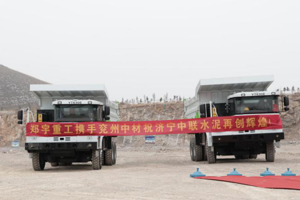 10月13日上午,濟寧中聯?兗州中材?鄭宇重工純電動礦用自卸車交車儀式在濟寧中聯踞龍山礦舉行,參加活動的領導有濟寧中聯總經理助理賈正紅、總經理助理楊印龍、鄭宇重工銷售公司總經理馬勇、兗州中材副總經理劉占中、泗水分公司經理劉進德、曲阜分公司經理李力等。