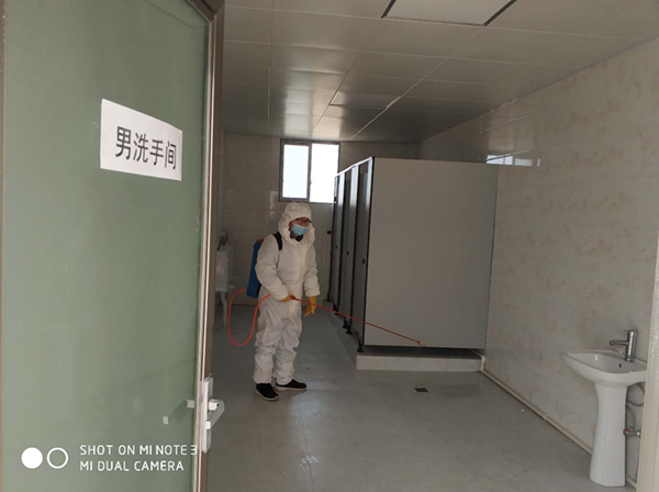 分公司組織專人每日對生活區辦公室、餐廳、衛生間等場所每日消毒兩次,要求員工做好自我防護,勤消毒勤洗手,共同打造抗擊疫情的良好環境。