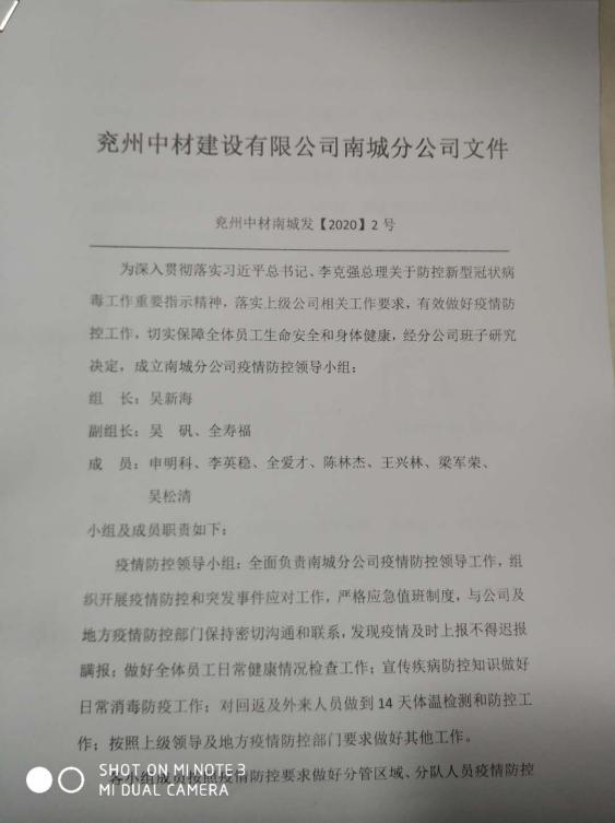 分公司以深入貫徹落實集團公司文件精神為目標,密切配合當地政府工作,成立以吳新海同志為首的疫情防控領導小組,細化人員責任,明確組織分工,從思想高度做好打贏防疫攻堅戰的準備。