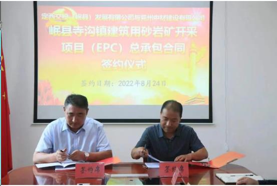 | 8月24日上午,定西交投(岷縣)發展有限公司與兗州中材建設有限公司簽署岷縣寺溝鎮建筑用砂巖礦開采項目(EPC)總承包合作協議,在岷縣投資建設綠色、環保礦石開采加工生產線。