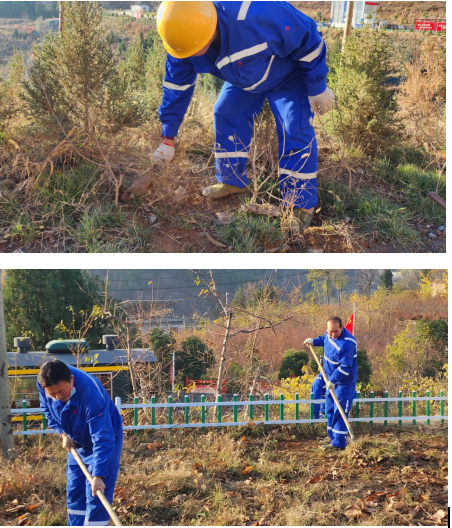 白坪分公司在3天內對所屬區(qū)域的雜草、垃圾等進行集中清理。大家用割草機、鐮刀、剪刀等清理綠化帶、草坪上的雜草,用塑料袋袋、編織袋撿拾運礦道路、生產區(qū)域、邊坡、路旁垃圾,對排水渠、洗車機等仔細清理;對項目部生活區(qū)荒地重新開墾復墾,全體人員熱情高漲,干勁十足,分工協(xié)作,配合默契,全然不顧天氣寒冷。