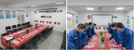 分公司員工于現場辦公室進行啟動儀式簽字活動。大家廣泛發動,擴大宣傳范圍,大力宣傳活動主題和重點活動內容,宣傳職業病防治和職業健康知識及有效舉措。