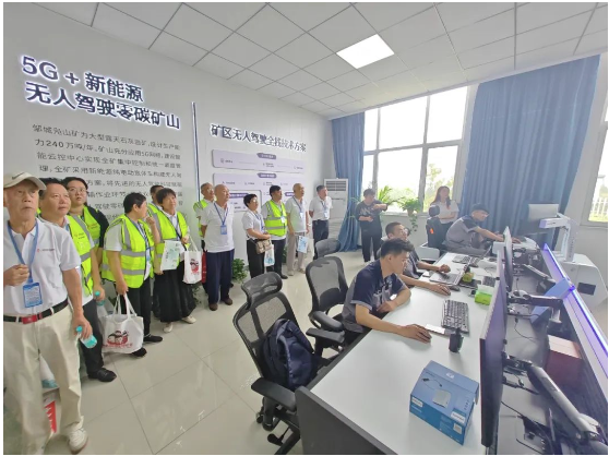 啟動(dòng)儀式后,全體人員走進(jìn)兗州中材鄒城分公司,親身感受兗州中材近年來的發(fā)展變化。在講解員的帶領(lǐng)下,全體人員依次參觀辦公樓無人駕駛云控中心、骨料生產(chǎn)線中控室、礦山180觀景平臺(tái)觀摩無人駕駛運(yùn)輸,近距離了解兗州中材在生態(tài)環(huán)保、綠色發(fā)展、礦山開采、智能制造等方面取得的成績(jī)。
