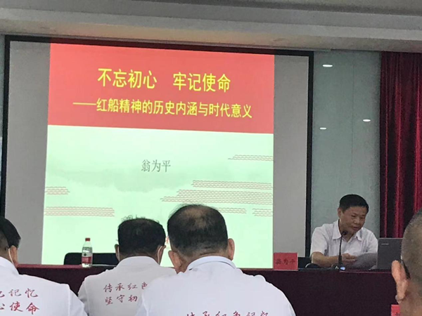 他從歷史形態、理論形態、實踐形態三個方面闡述了紅船精神的形成發展、深刻思想和時代意義,使大家更深一步了解了紅船精神的歷史內涵和時代意義,充分認識到紅船精神就是中國革命精神之源,那就是開天辟地敢為人先的首創精神,堅定理想、百折不撓的奮斗精神,立黨為公、忠誠為民的奉獻精神;又進一步結合習近平總書記在不同時期的講話和指示,使我們認識到“紅船精神”就是充分體現了走在時代前列的精神,是我們黨的先進性之源。 下午,大家來到嘉興南湖紅船邊,我們循著革命先輩的足跡重溫那段波瀾壯闊的壯舉,中國共產黨就從這里誕生,從這里出征,從這里走向全國執政,秀水泱泱時代變遷,紅船依舊,卻精神恒昌。